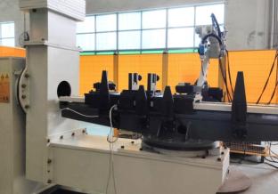 配两轴 L 型变位机及焊接电源,采用双工位 H 型布局,变位机双持 双轴垂直翻转,变位机带协调功能,使操作更便捷、效率更高。